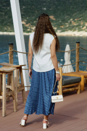 Блуза в молочном оттенке — это тихая уверенность и универсальная нежность. Она не требует внимания, но задаёт тон всему образу: чистый, тёплый и лёгкий. В гардеробе она работает как нейтральный фундамент, на который удобно «наслаивать» стили, текстуры и настроение. Блуза спокойно ладит с пастельной палитрой, глубокими оттенками и фактурными изделиями. Она аккуратно подчёркивает вкус, не становясь центром внимания. Это вещь для тех, кто ценит продуманную простоту и хочет, чтобы каждая деталь работала на образ. Блуза прямого силуэта с округлой формой горловины и нагрудными вытачками по полочке. Спинка без особенностей. Низ в блузе фигурной формы, с разрезами в боковых швах. Длина спинки блузы 63,5 см, длина плеча 12,5 см (р 52-56, 13 см (р 58-62). Блуза 52 54 56 58 60 62 обхват груди 112 116 120 124 128 132 обхват талии 116 120 124 128 132 136 обхват бедер 124 128 132 136 140 144