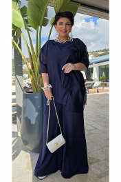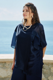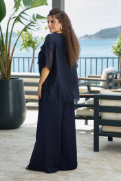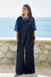 Широкие брюки глубокого синего оттенка, свободно свисают, создавая плавные линии и элегантную силуэтность. Ткань, из которой они выполнены, обладает текстурой, придавая образу нотку роскоши и комфорта. Брюки идеально подчеркивают фигуру, создавая стильный и уверенный вид. Брюки свободного силуэта, расширяются к низу. Пояс притачной на резинке, что обеспечивает максимально удобную посадку на любой тип фигуры, в боковых швах карманы. Длина брюк 108 см. Брюки 50 52 54 56 58 60 обхват талии 76/110 80/114 84/118 88/122 92/126 96/130 обхват бедер 120 124 128 132 136 140