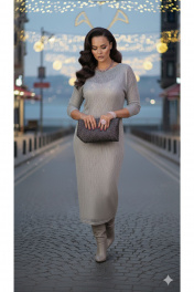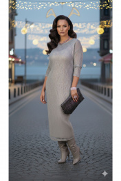 Комплект женский, двух предметный, состоящий из верхнего и нижнего платья. Комбинация текстур создаёт баланс между комфортом и эффектной внешностью. Тонкий трикотаж верхнего платья держит верх мягко и деликатно, не перегружая образ, в то время как нижнее платье обволакивает фигуру, тем самым привносит лаконичную драму и движение. Данный наряд подходит как для повседневной городской среды, так и для торжественных выходов, когда нужен стиль без лишних слов.Верхнее платье (состав: 45% полиэстер, 24% вискоза, 31% люрекс) из тончайшего трикотажа держится на теле как вторая кожа: прозрачность ткани едва скрывает очертания силуэта, а тонкий плетёный рисунок ловко ловит свет, создавая игру полупрозрачных переходов. Платье полуприлегающего силуэта, длины миди, с горловиной округлой формы. Линия плеча в платье спущенная. Рукав втачной, длинный. Спинка без особенностей. Нижнее платье (состав: 93% нейлон, 7% эластан) прилегающего силуэта, на бретелях, с фигурным вырезом горловины формы «карэ», на обтачке. Спинка без особенностей. Длина верхнего платья 124 см, длина рукава 54 см (р 50-54), 52 см (р 56-60). Длина нижнего платья 112 см, длина плеча 6 см. Верхнее платье 50 52 54 56 58 60 обхват груди 108 112 116 120 124 128 обхват бедер 118 122 126 130 134 138 ширина рукава вверху 40 40 40 44 44 44 Нижнее платье 50 52 54 56 58 60 обхват груди 94 102 106 110 114 118 обхват бедер 104 108 112 116 120 124