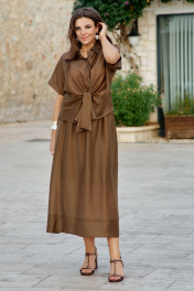 Блузка словно соткана из жидкого шоколада, застывшего в момент своего самого изысканного перелива. Это не просто одежда — это тонкая игра света и тени, где полупрозрачность становится не недостатком, а главной художественной задумкой. Шоколадный цвет здесь становится не просто оттенком, а полноценным персонажем этой визуальной истории — теплым, глубоким, с легкой горчинкой изысканности. А полупрозрачная, летящая ткань создаёт иллюзию невесомости и лёгкой таинственности. Блузка с центральной застёжкой на декоративные петли-пуговицы по планке, с воротником рубашечного типа. Её свободный крой обволакивает фигуру, не стесняя, а подчёркивая её естественные линии. Рукав в блузке цельнокроеный с притачной манжетой по низу. По переду блузки цельнокроеные отрезные детали завязывающиеся на бант. Спинка с отрезной кокеткой. В боковых швах блузки разрезы. Полупрозрачная шоколадная блузка — универсальный элемент, который работает в любом стиле. Ключ к успешному образу — баланс: если блузка воздушная и чувственная, низ должен быть более структурированным, и наоборот. Экспериментируйте с текстурами, не бойтесь контрастов и помните — эта вещь создана быть центром внимания в любом ансамбле. Длина блузы 56 см (р 50-54), 57,5 см (р 56-60), длина рукава 32 см (р 50-54), 33 см (р 56-60). Блуза 50 52 54 56 58 60 обхват груди 132 132 132 144 144 144 обхват талии 118 122 126 130 134 138 обхват бедер 122 126 130 134 138 142