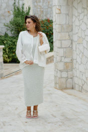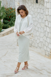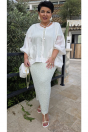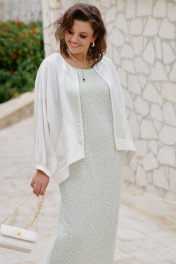 Блузон легкий полупрозрачный в романтическом стиле. В верхней части большого объема, плечевой пояс с естественным наклоном и плавным переходом в линию рукава. Блузон выполнен из полупрозрачной вуали в один слой. Рукава цельнокроенные, немного укороченные с сборкой по низу и притачной узкой манжетой. Застежка вертикальная по переду на металлическую тесьму-молнию. По переду выполнены накладные карманы из вуали. По спинке блузон немного удлинён. Блузон в тренде сезона и будет актуален в следующих. Это стильная женская одежда, которая идеально сядет на любую фигуру. Его легко сочетать с платьем, брюками, комбинезоном. Он станет любым предметом вашего гардероба в теплое время года, образ в нем женственный и элегантный. Фасон современный, из качественных материалов. Блузон уместно надеть на торжество, прогулку с подругами, ресторан, кафе. Вы будете чувствовать себя в нем роскошно и на каблуках, и в спортивном стиле с кроссовками. Это универсальная нарядная одежда для женщины, которая себя любит. Длина блузона 68,5 см, длина рукава 68 см (р 52-56), 69 см (р 58-62). Блузон 52 54 56 58 60 62 обхват груди 180 180 180 192 192 192 обхват бедер 152 156 160 164 168 172 ширина рукава внизу 28 28 28 30 30 30