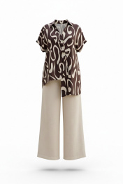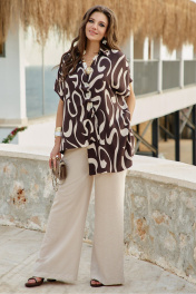 Бежевые прямые брюки с лёгкой фактурой — это нейтралитет, который говорит больше, чем самые яркие цвета. Они как манифест о знании себе цены, понимании качества, умении выбирать, свободе от необходимости доказывать что-то через одежду. Брюки не обтягивают — они оформляют. Они создают вертикаль, которая: визуально вытягивает силуэт — делая его стройнее, балансируют с объёмом блузки — создавая гармонию, позволяют ногам дышать — даже в самую жару, дают свободу шага — широкого, уверенного. Брюки прямого силуэта, с притачным поясом со вставкой эластичной тесьмы-резинки в бочках, застёжкой на тесьму-молнию в гульфике и пуговицу в поясе. В боковых швах брюк прорезные карманы. Длина блузки 69 см (р 52-56), 72 см (р 58-62). Длина брюк 108 см. Брюки 52 54 56 58 60 62 ширина по талии 84/104 88/108 92/112 96/116 100/120 104/124 обхват бедер 124 128 132 136 140 144
