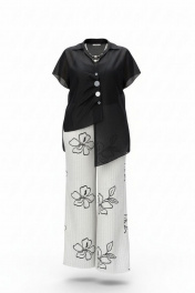 Брюки прямого силуэта, с притачным поясом со вставкой эластичной тесьмы-резинки в бочках, застёжкой на тесьму-молнию в гульфике и пуговицу в поясе. В боковых швах брюк прорезные карманы. Черные полоски плавно в сочетании с цветочными узорами добавляют в комплект легкость и игривость, превращая его в настоящее произведение искусства. Брюки на подкладке. Обращаем Ваше внимание, что фурнитура может незначительно отличаться от фото. Длина брюки по боковому шву 108 см. Брюки 52 54 56 58 60 62 обхват талии 84/104 88/108 92/112 96/116 100/120 104/124 обхват бедер 124 128 132 136 140 144