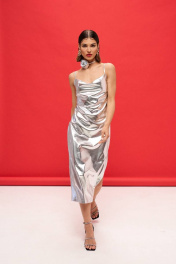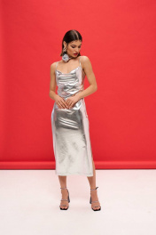 Полуприлегающее платье с вырезом-качели и бретелями VIZANTI 9386 серебро