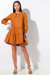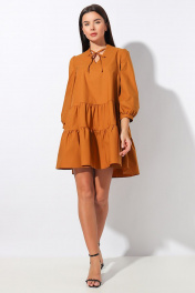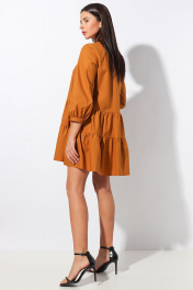 Платье свободного кроя хлопковое с V-вырезом VIZAVI 633 горчица