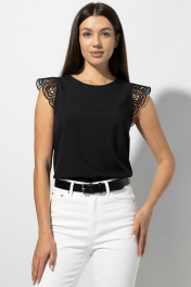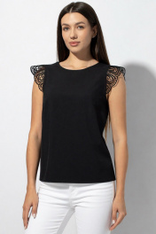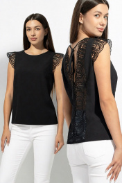 Блуза полуприлегающая с кружевом и кружевным крылышком VIZAVI 673 черный