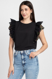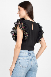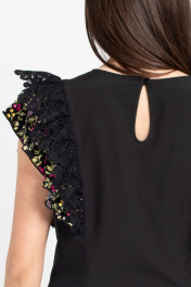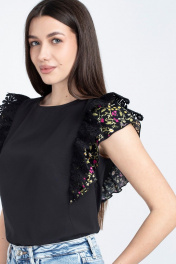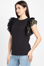 Черная полуприлегающая блуза с рюшей и капелькой из текстиля VIZAVI 689 черный