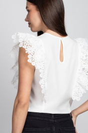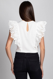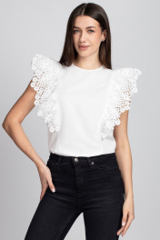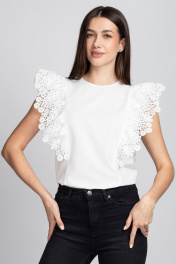 Белая блуза из вискозы и кружева с рюшей и капелькой VIZAVI 690 молочный