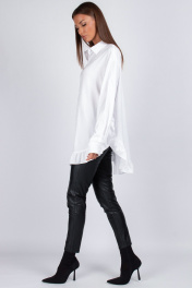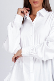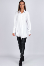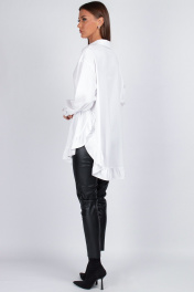 Знакомьтесь — наша новая женская блузка, которая доказывает, что оверсайз может быть невероятно нежным. Это не просто блузка рубашка, это маст-хэв для тех, кто ценит комфорт и изящные детали. Модель имеет прямой свободный силуэт со спущенным плечом — сидит мягко, не сковывая движений. Перед из двух частей с застежкой на 7 пуговиц создает классическую основу, а главный сюрприз ждет внизу: по низу переда и спинки добавлена притачная рюша. Эта деталь преображает свободную блузку, делая ее кокетливой и нарядной. Плотный воротник на отрезной стойке держит форму, придавая образу структурированность, а рукава с манжетами на двух пуговицах завершают композицию. Сочетайте несочетаемое: носите эту блузу с грубыми ботинками или легкими босоножками — везде она будет смотреться актуально. Уход: бережная стирка при температуре не выше 30°С." Один размер oversize подходит на 42-50