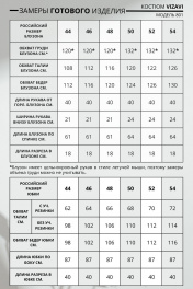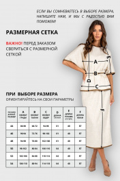 Костюм женский изготовлен из трикотажного полотна, состоит из блузона и юбки. Блузон прямого силуэта с цельнокроеным рукавом. Горловина, низ изделия, низ рукава, боковые, плечевые срезы обработаны отделочной тканью. В боковых швах разрезы с отделочной пуговицей. Юбка прямого силуэта, пояс с резинкой (ширина резинки 4 см.) Боковые срезы обработаны отделочной тканью. В боковом шве разрез с отделочной пуговицей без подкладки. По линии талии съемный пояс с отделочными элементами из металла (цвета золота).