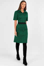 Платье женское полуприлегающего силуэта, отрезное по линиям талии. Линия талии с отделочной эластичной тесьмой. На полочке застежка на петли и пуговицы. Рукав втачной короткий. Изделие отлично садиться на фигуру благодаря хорошей эластичности ткани. Длина изделия 44, 46, 48: 96 см. Длина изделия 50, 52, 54: 101 см. Уход: бережная стирка при температуре не выше 30°С.
