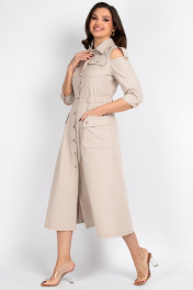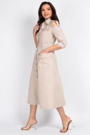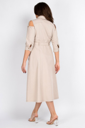 Платье из хлопка с резинкой по талии и клиньями VIZAVI 823 бежевый_джинс - фото 9