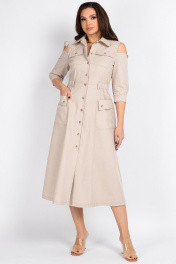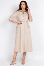 Платье из хлопка с резинкой по талии и клиньями VIZAVI 823 бежевый_джинс - фото 1