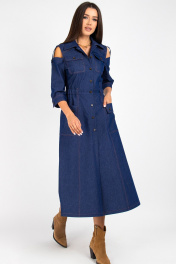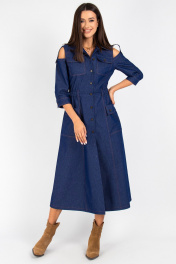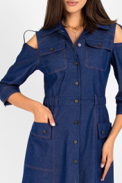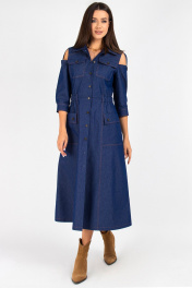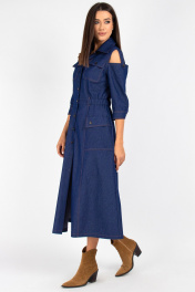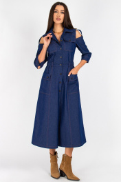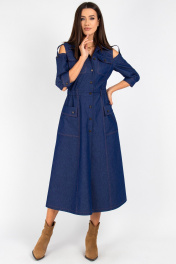 Платье из джинса с отрезной линией и вставками из ткани VIZAVI 823 синий_джинс