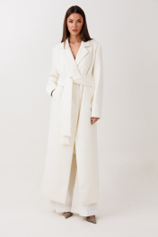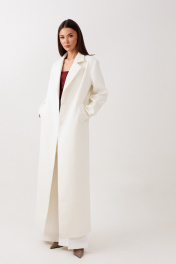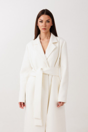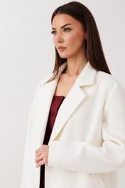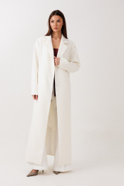 Пальто: -прямой силуэт - воротник пиджачного типа двухбортный - рукав двухшовный - рукав втачной - прорезные карманы - застежка потайные пуговицы - шлица по спинке - пояс в комплекте.