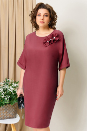Нарядное платье из текстиля полуприлегающего силуэта с цельнокроеным рукавом. Длина платья- 101 см по центру спинки. Горловина платья- округлая. . Съемное украшение в комплекте изделия.