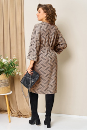 Элегантное лаконичное платье из эластичного трикотажа прямого полуприлегающего силуэта с акцентной V-образной горловиной. Центральный элемент отделки платья- вставки из кожи и необычная съемная брошь для легкости образа. Длина платья немного за колено, уместная в большинстве ситуаций. Спереди небольшой вырез для максимального удобства. Длина платья по центру спинки- 104см. Декоративный и функциональный пояс- в комплекте изделия.