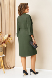 Элегантное лаконичное платье из эластичного трикотажа прямого полуприлегающего силуэта с акцентной V-образной горловиной. Центральный элемент отделки платья- вставки из кожи и необычная съемная брошь для легкости образа. Длина платья немного за колено, уместная в большинстве ситуаций. Спереди небольшой вырез для максимального удобства. Длина платья по центру спинки- 104см. Декоративный и функциональный пояс- в комплекте изделия.
