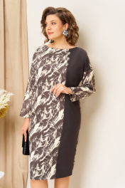 Эффектное платье полуприлегающего силуэта, сочетающая в себе лаконичность и элегантность классического футляра с современным и стильным декором. Вертикальная вставка добавляет модели архитектурной четкости, , а декоративные пуговицы служат изящной деталью. Горловина платья выполнена в форме "лодочка". Для удобства в боковых швах плятья есть потайные карманы. Рукав слегка спущенный, 7/8. Длина платья- 102 см по центру спинки.
