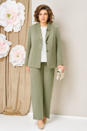 Жакет, брюки - полиэстер 51%, вискоза 46%, спандекс 3%. Блуза - полиэстер 67%, хлопок 32%, спандекс 1%