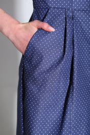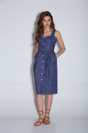 Сарафан женский приталенного силуэта, зауженный к низу, с центральной застежкой на пуговицы. Отрезной по линии талии. На широких бретелях. В нижней части изделия карманы в боковых швах. На передних частях юбки мягкие складки. Длина изделия от плеча 108 см.