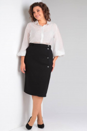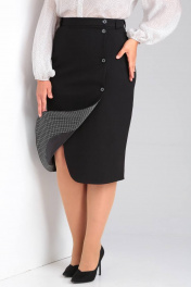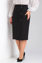 Зауженная черная юбка с запахом и пуговицами для офисных образов Your size 2205