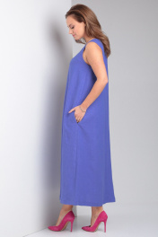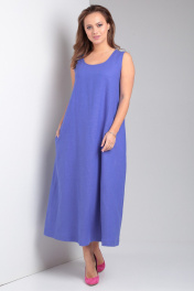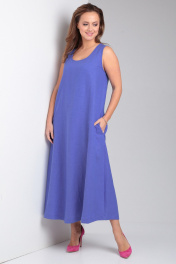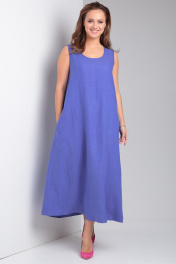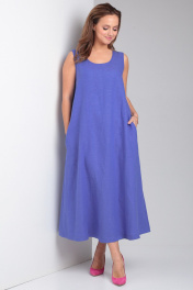 Свободное платье из льна с карманами и округлой горловиной Your size 2226 василек