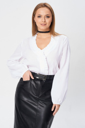 Белая блузка из хлопка с V-вырезом и рюшей, демисезон Your size 2242