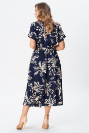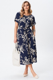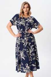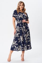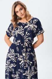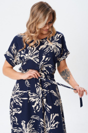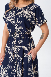 Платье женское отрезное по линии талии и расклешенное к низу. Вырез округлый. По переду имитация застежки, декорированая пуговицами. Рукав короткий цельнокроеный, со спущенным плечом. Благодаря элегантному поясу-кулиске платье визуально удлиняет силуэт. Длина изделия от линии талии для роста 164 см 81 см, для роста 170 см 83 см. Это платье станет отличным выбором для любого случая — от повседневных встреч до торжественных мероприятий.