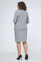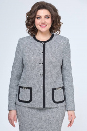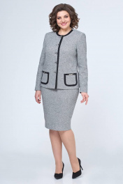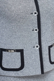 Повседневный трикотажный костюм, состоящий из жакета и юбки. Жакет полуприлегающего силуэта. Рукав втачной. По спинке средний шов, рельефы. Застежка на пуговицах. Полностью на подкладке. Спереди накладные карманы. Юбка прямого силуэта на подкладке. В поясе, по бокам от вытачки до вытачки с эластичной лентой. На заднем полотнище юбки средний шов со шлицей и застежкой на пуговицу и молнию. Пуговицы могут отличаться от представленных на фото. При подборе необходимого размера, используйте таблицу обмерных данных в готовом виде.