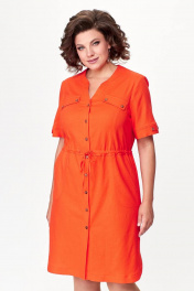 Льняное платье с кулиской и накладными карманами Zlata 4427 оранжевый